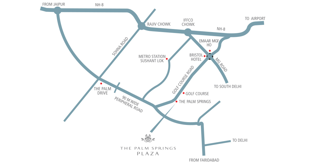 Emaar Palm Springs Plaza is a world-class retail and commercial Office space development situated in Sector 54, Gurgaon on the prestigious Golf Course Road and is one of Gurgaon's most desirable office address. The offices at The Palm Springs Plaza provides your business an environment built to nurture excellence and productivity.